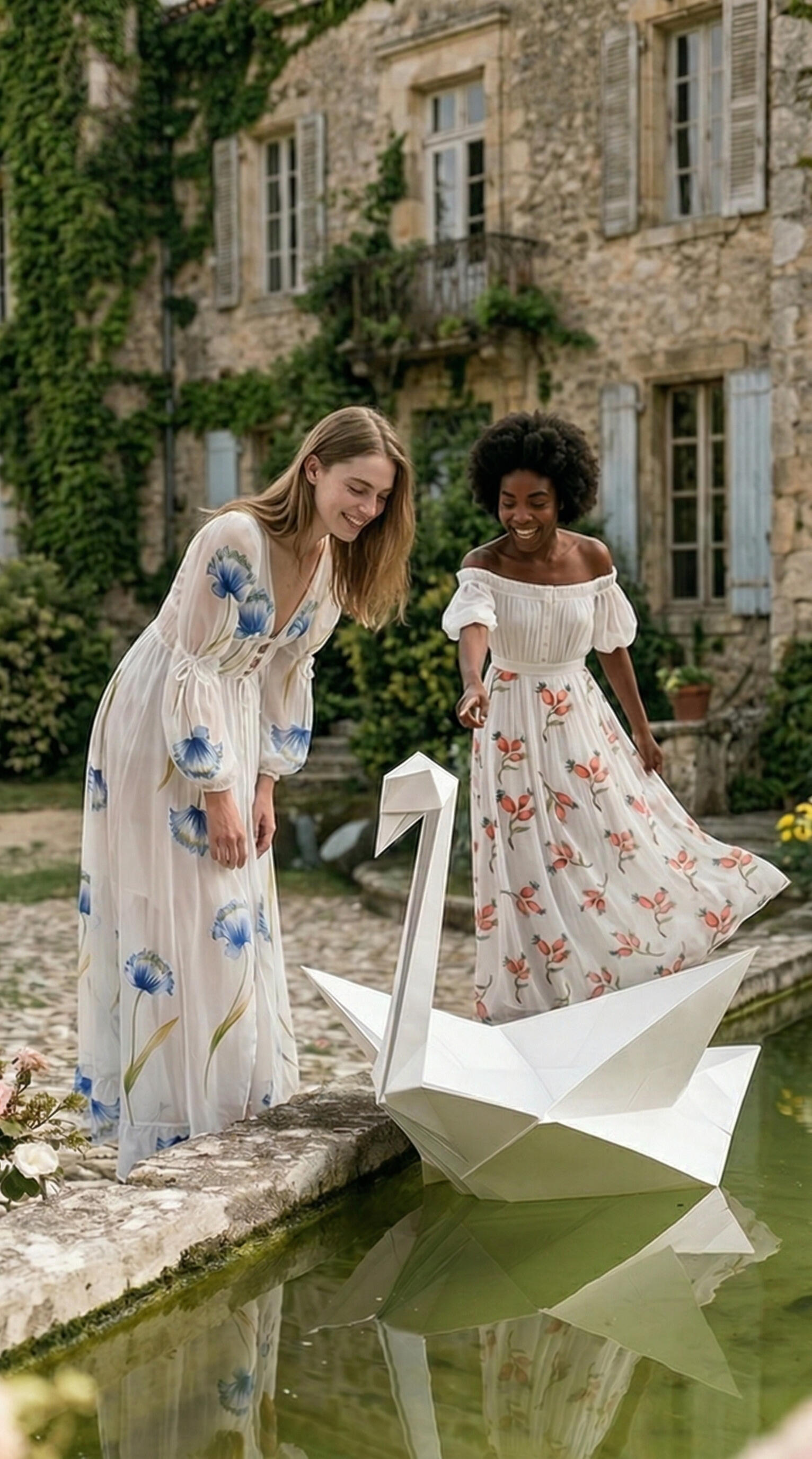 A fashion campaign concept for the imaginary brand Young Bright Girls, inspired by a whimsical universe where tactile fabrics, natural beauty, and poetic paper origami express joy and quiet authenticity.