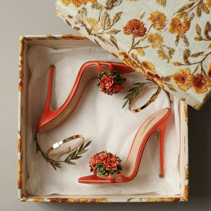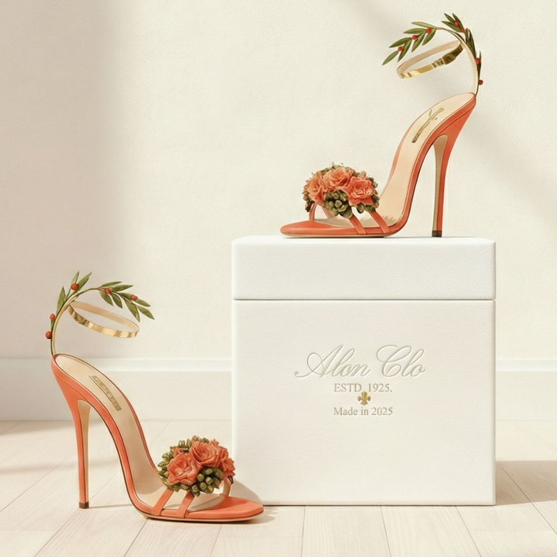 Concept for a name-seek feminine luxury shoe brand inspired by botanical forms and artisanal craft. Created complete brand world including product design, retail environment, and packaging system rooted in watercolor illustration aesthetic.