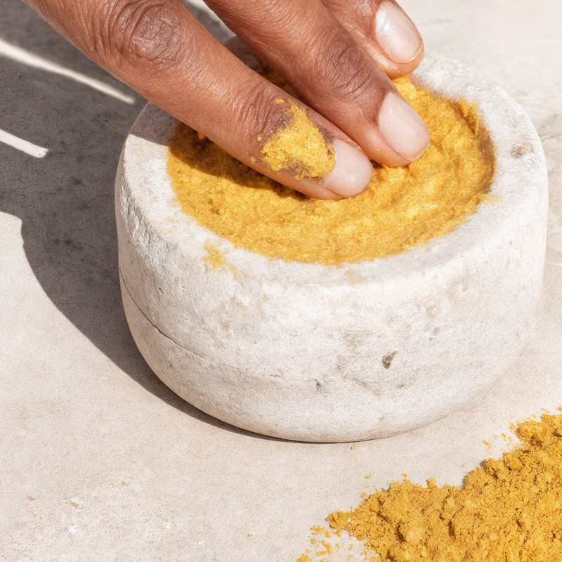 A skincare concept rooted in the warmth and texture of turmeric. From root-shaped packaging to golden, richly textured formulas, the visual world evokes purity and nature. Imagined for every skin tone.